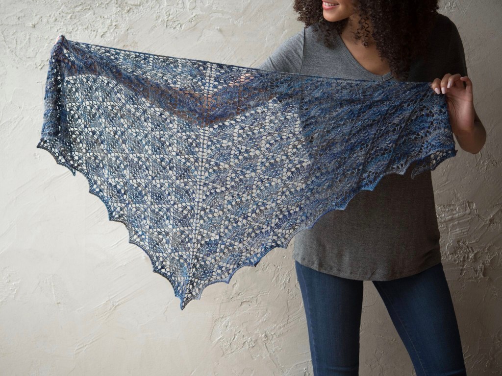This shawl is knit from the neck to the point. The pattern includes written instructions as well as a chart for those more comfortable working with charts.