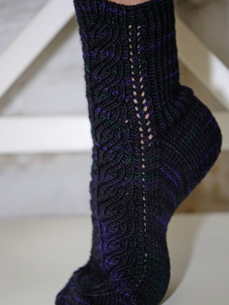 For those of you who have already made Simple Skyp Socks, this pattern is more of a good thing. A deceptively simple stitch, the “skyp” lends texture and rhythm to these socks and mitts. The four-round pattern is easy to remember and the small change on round 4 creates a faux cable that is pretty without being fiddly to knit. Your finished socks or mitts will have a classic look with a modern twist. (Or should that be modern “skyp?”)